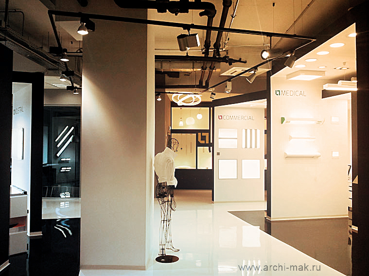 Компания «Световые Технологии» - крупнейший производитель и поставщик светотехнических решений. Основная сфера деятельности - разработка и производство световых приборов общего и специального назначения для внутреннего и наружного освещения. В составе дизайн-проекта разработаны проекты инженерных систем вентиляции, электроснабжения, кондиционирования. В своем шоу-руме компания "Световые технологии" представляет свою продукцию, а также проводит обучение специалистов.